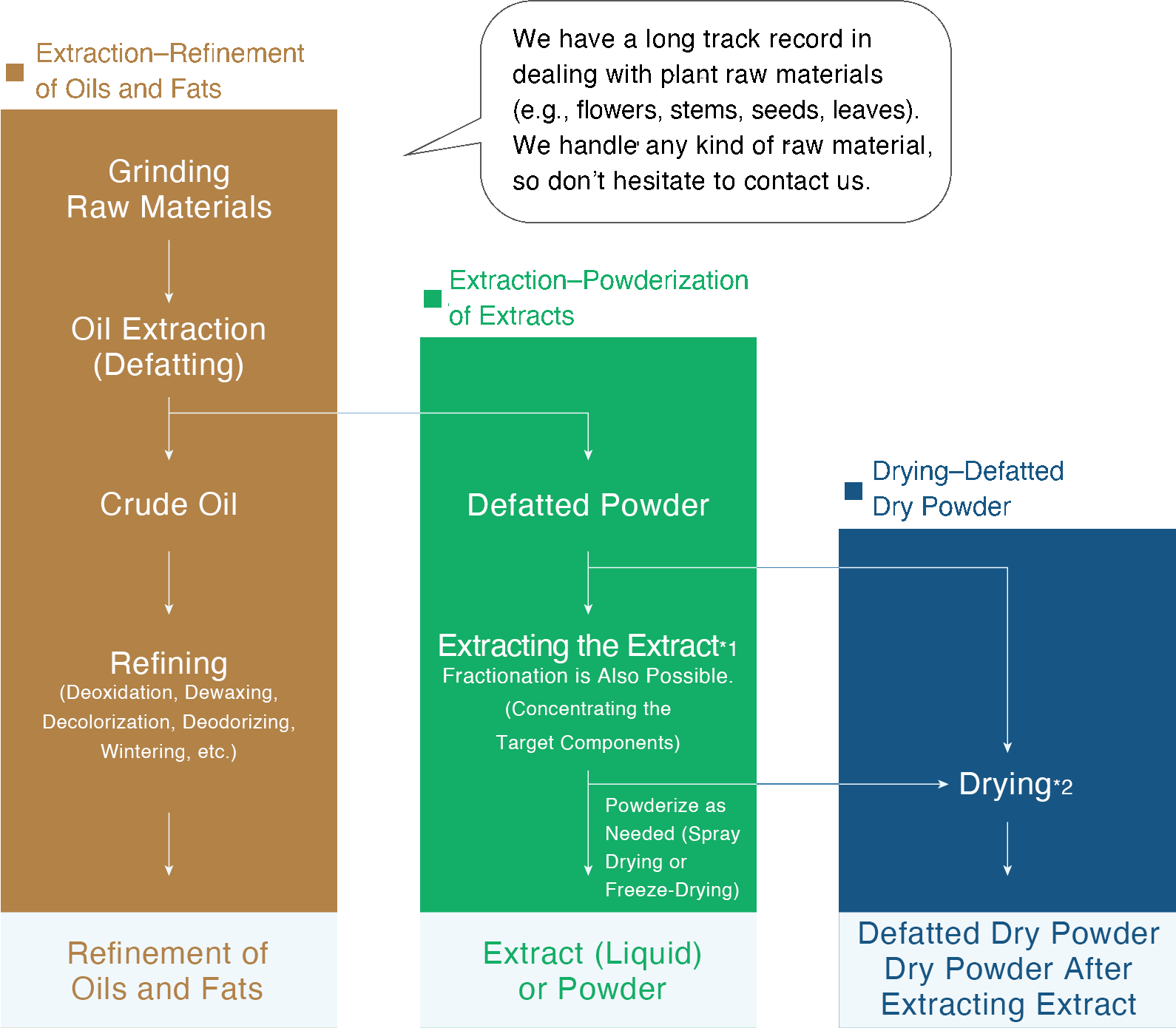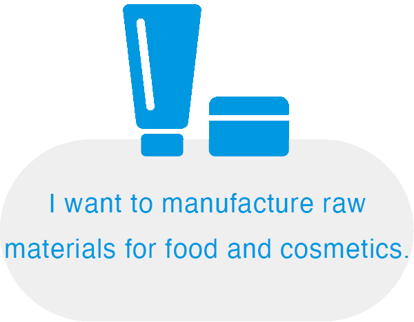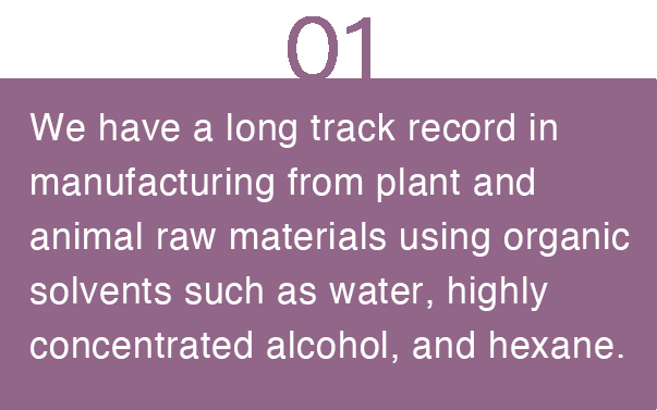 "It is possible to manufacture Ingredients for health food and cosmetics. We support the extraction and refinement of fats and extracts using various organic solvents."