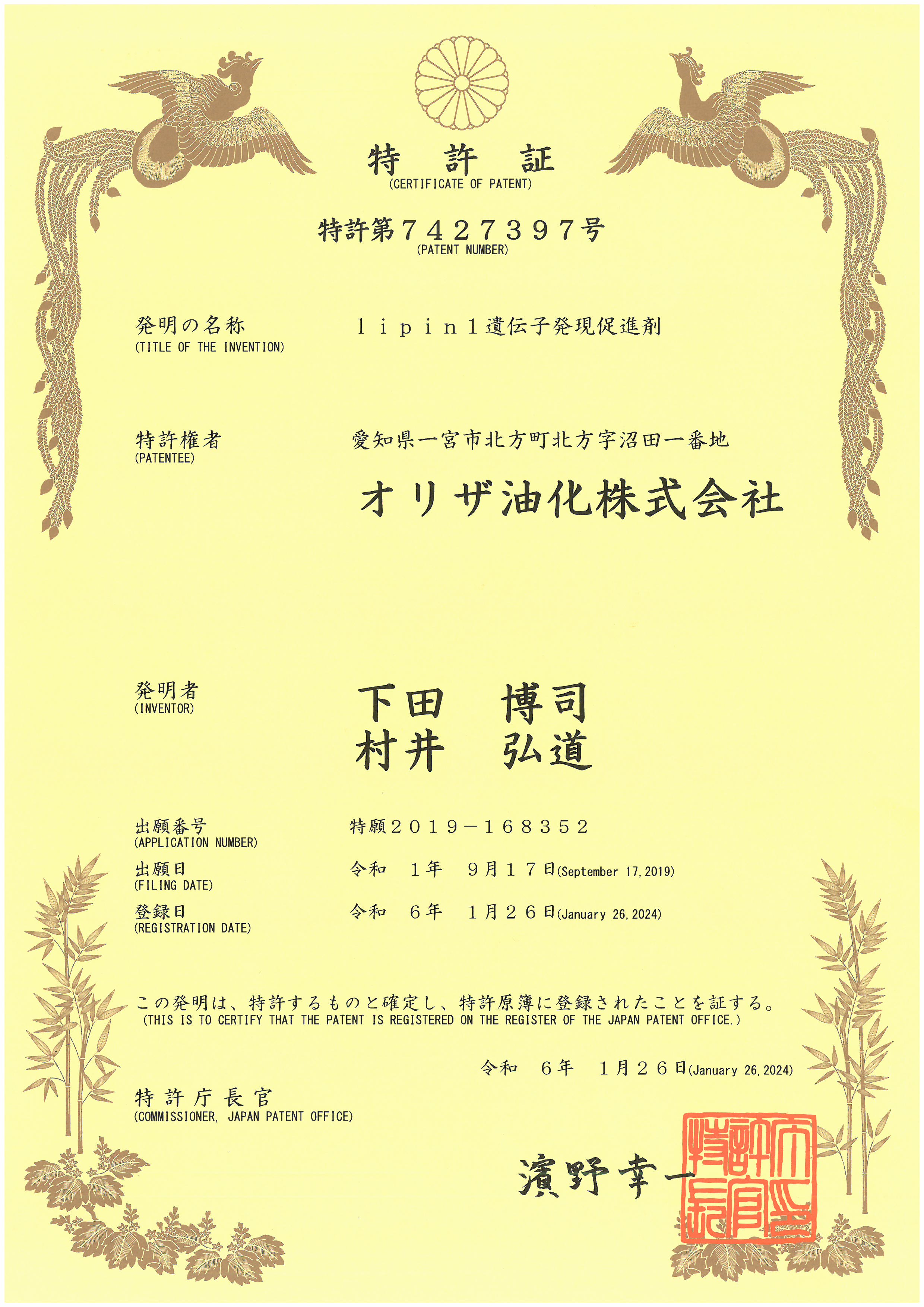 Product name カカオエキス Title of invention lipin1 gene expression promoter Patent number 7427397 Date of filing Date of grant Summary