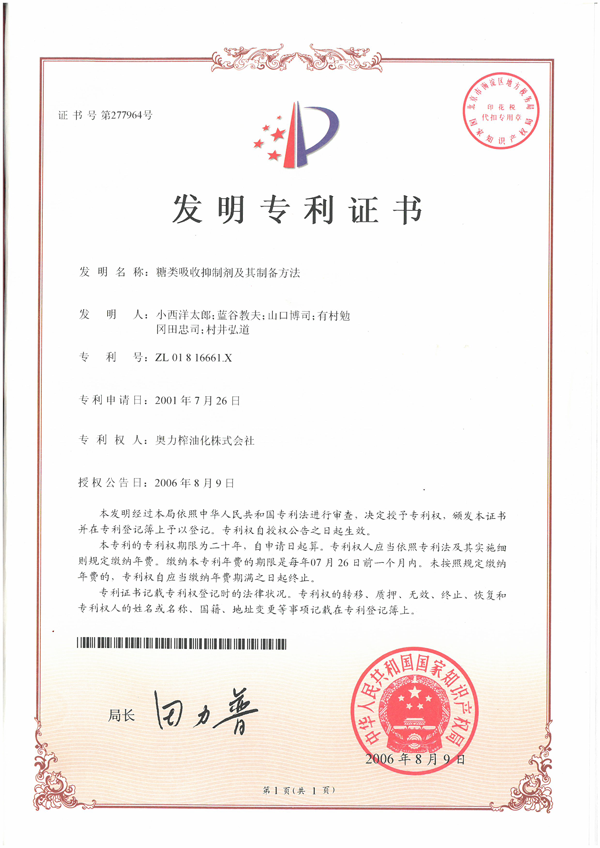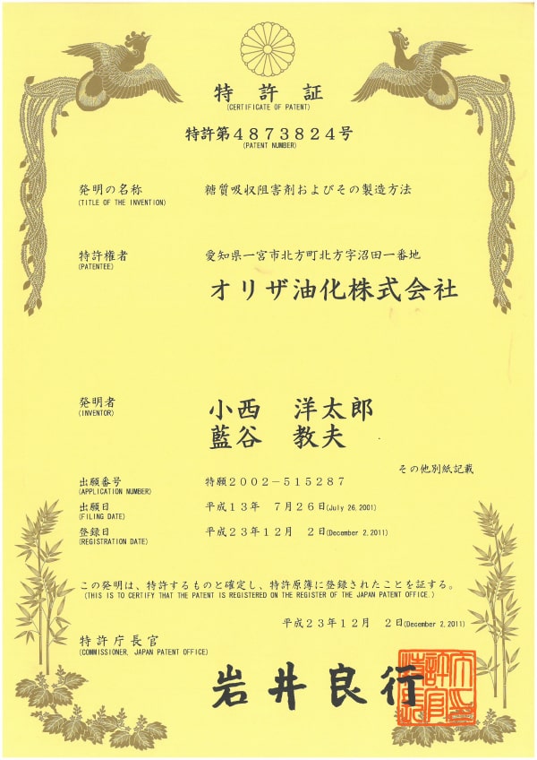 糖質吸収阻害剤およびその製造方法(存続期間満了)